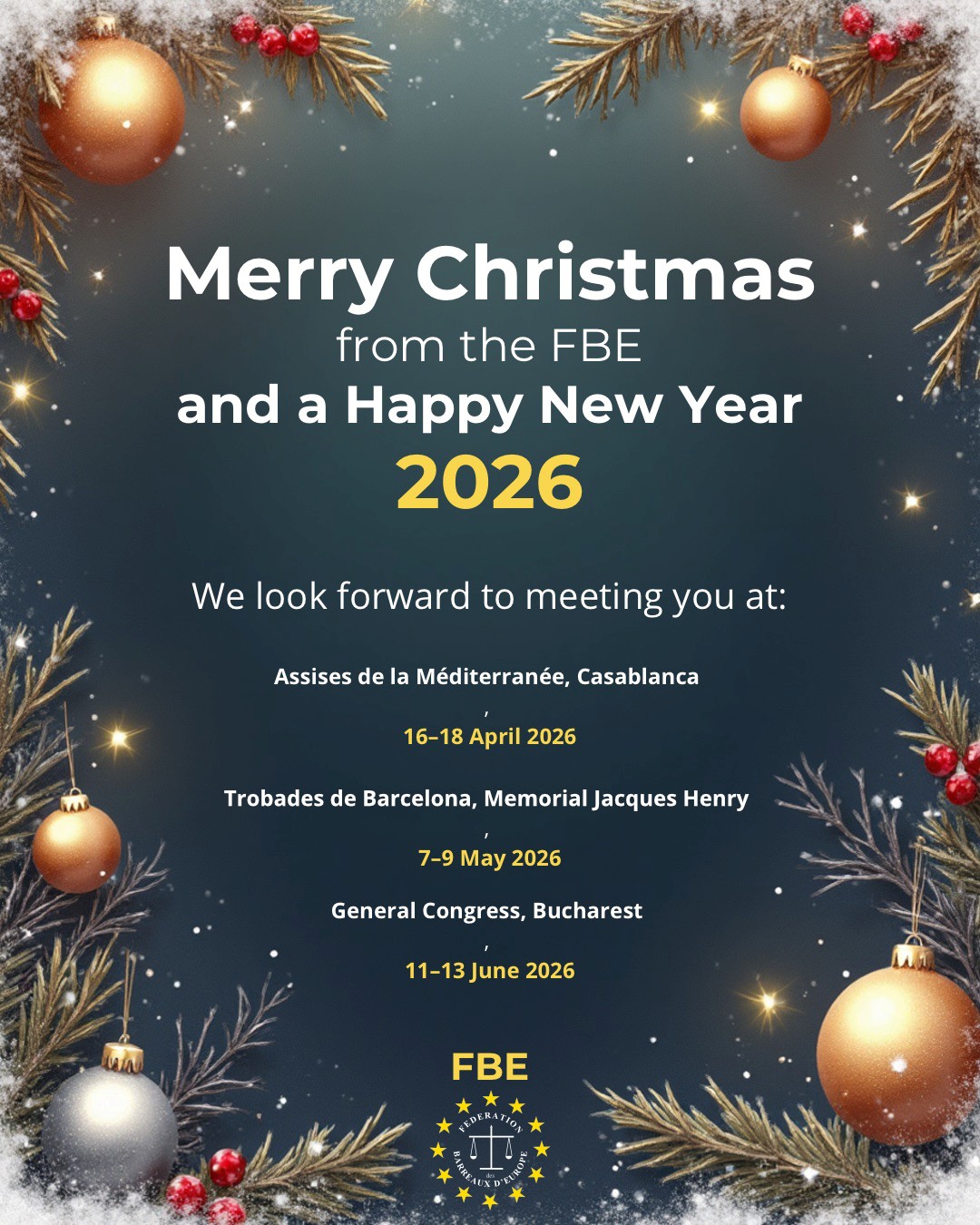 NEWSLETTER FEDERATION DES BARREAUX D¨EUROPE – SEASON´S GREETINGS